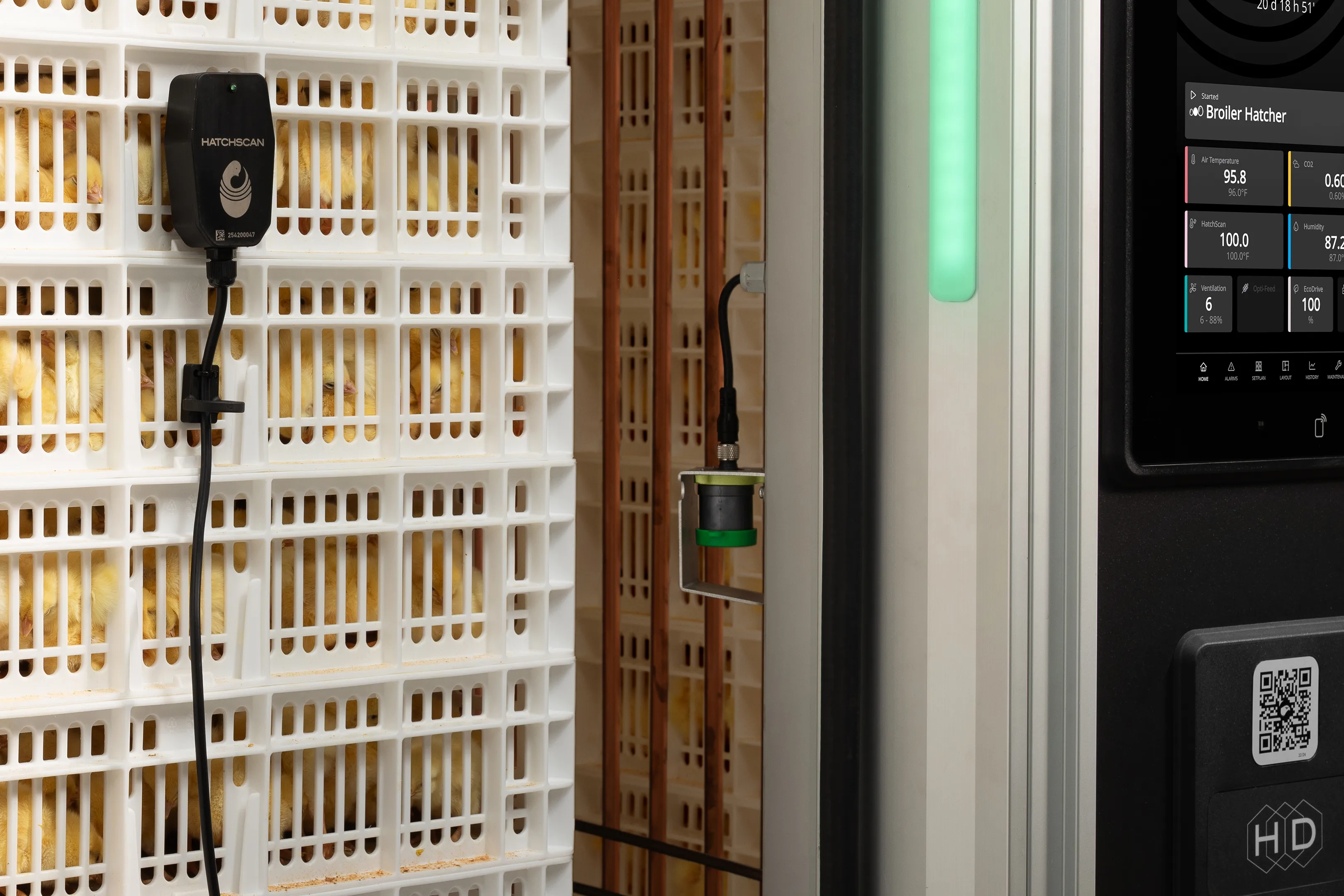 To ensure the embryo develops into a healthy chick, oxygen must enter the egg and carbon dioxide must leave it as a waste product. During chick storage, excess CO₂ must also be removed. CO₂NTROL™ automatically provides the optimal CO₂/O₂ levels, just like in the natural nest.